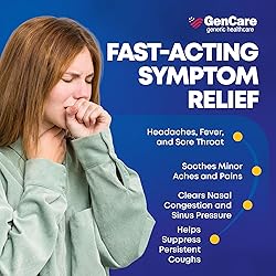 - Multi Symptom ReliefAre you looking for a non drowsy day time relief cold and flu softgel?Are you tired of paying the huge markups of physical pharmacies and medication prices from big box stores?Enjoy the ultimate convenience of GenCare’s 48 count Extra Strength Acetaminophen Pain Relief.Each serving contains Acetaminophen 325mg, Dextromethorphan HBr 10mg and Phenylephrine HCl 5mg.Multi Symptom Pain ReliefAcetaminophen is a pain reliever and fever reducer to help temporarily relieve headache, minor aches and pains and fever.Dextromethorphan HBr is a cough suppressant to help temporarily relieve cough due to minor throat and bronchial irritation.Phenylephrine HCl is a nasal decongestant to help temporarily relieve nasal and sinus congestion.DirectionsDirections: do not take more than directed(see OVERDOSE WARNING) do not exceed 4 doses per 24 hrs. Adults and children 12 years of age or older: take 2 softgels with water every 4 hrs. Children 6 to under 12 years: ask a doctor.Children 6 years under: do not use.Do not use: with any other drug containing acetaminophen (prescription or nonprescription). If you are not sure whether a drug contains acetaminophen, ask a doctor or pharmacist.Product Details:Does Not Contain CaffeineContains 48 SoftgelsSafety Note: Please adhere to all safety warnings provided. Always consult your doctor prior to using any medicines.Join thousands of pain relief customers…Click Add-to-Cart to order your 48 count bottle of Multi Symptom Cold and Flu Relief Today!