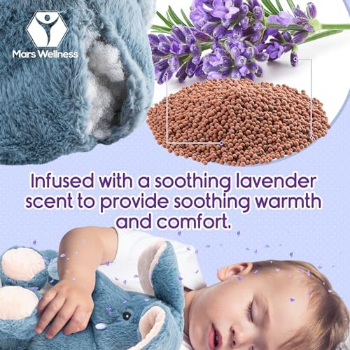 Lavender Scented Microwavable Plush Elephant - Heated Stuffed Animals - Hot or Cold Therapy, Bedtime Buddy, Travel Companion, Anxiety and Colic Relief