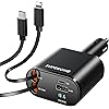 - ⚡Universal Compatibility⚡ Certified for various fast charging protocols, including PD, QC3.0, AFC, MTK, and FCP, this fast charging car charger is compatible with a wide range of devices such as phones, tablets, ipads, smartwatches, airpods and even the Nintendo Switch. The built-in retractable charger cables supports iPhone 16 15 series and other Android phones. (Note: Apple Cable Not Included)