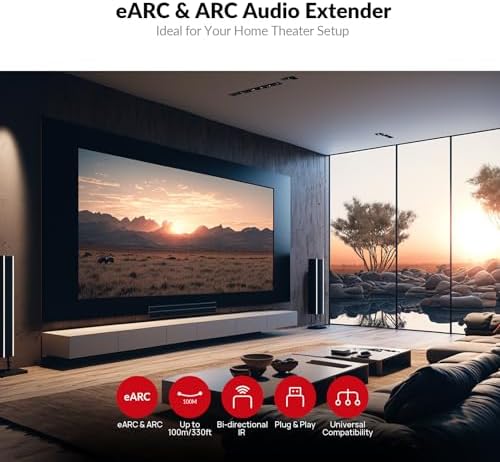 - 【Ultra-Long Transmission Range】You can effortlessly extend eARC/ARC audio up to 330ft/100m using a single Cat 5e/6/6a/7 cable. Even if you have an AV receiver in the basement and a TV on the first floor, this audio extender allows you to transmit stable, high-quality audio with ease.