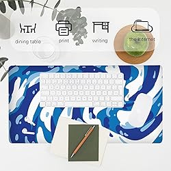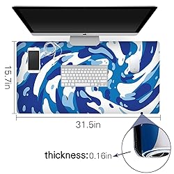 【Super Thick,Large & Extended Size】The full desk XXL mouse pad measures 31.5 x 15.7 inch , Compared to the traditional 3mm thick mouse pad, we have adopted thickening technology with {4MM} thickness,make it softer and more durable.Natural non-slip rubber bottom, big enough to accommodate your computer, laptop, keyboard and other desk items, and still leave plenty of space for your mouse to move all around. 【Strata Liquid Mousepad】The unique fluid pattern design brings you a new feeling and is easily matched with any style of the room, office, home and desk. 【Ultra-smooth Surface】This large gaming mouse pad adopts superfine cloth on cover, the smooth, comfy cloth pad featuring a fine weave,which will make your mice glide on its surface smoothly,Optimized for fast movement while maintaining excellent speed and control during your work or game,available for mechanical, wireless and optical mice. 【Durable Stitched Edges】: The latest professional double stitched edges stitching technology ensures that the desk pad will not wear, deformation, degumming during use.durable enough for long time using. The computer mouse pad is thick and feels soft in the hand, which will provide comfortable support while typing, reading, writing and even sleepping. 【Soft and Non-slip Rubber Base】The soft and dense non-skid nature rubber base keeps the pad firmly in place, it can effectively prevent the mouse and keyboard from sliding and moving for stable operation.helps you track the mouse fast and accurately, maximally enhances your gaming/working experience.Works well on all types of desks including metal, leather, glass, wood, marble desk and more.