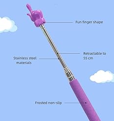 - Introducing our Teacher Pointer Sticks with Finger! Our collapsible and extendable finger pointer is perfect for teachers and students alike, helping to keep everyone engaged and interested during lessons. Our telescopic pointer finger is designed to be easy to use, providing a long pointer finger that can be extended according to your needs. The long finger pointer stick is great for use in the classroom, and the reading finger pointers for kids will help to keep young minds focused on the task at hand. Our finger pointer stick for teacher is made from high-quality materials that are built to last, delivering excellent durability and a long-lasting performance. The classroom pointer finger features a comfortable finger pointer hand grip, helping to reduce strain and improve comfort when using it for extended periods of time. Featuring a fun and playful design, our pointer finger is sure to put a smile on everyone's face. The finger pointers for kids reading are made with children in mind, providing a fun and interactive way to keep children engaged. Whether you're a teacher looking for a new tool to help keep your students focused, or a parent looking for ways to keep your children engaged in their education, our teacher pointer sticks finger are the perfect choice. So why not try our pointer finger today and experience the benefits for yourself?