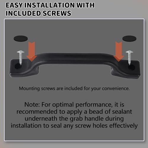 - Easy Installation with Included Screws - Mounting screws are included for your convenience. Note: For optimal performance, it is recommended to apply a bead of sealant underneath the grab handle during installation to seal any screw holes effectively