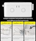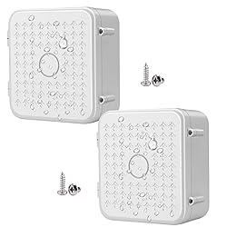 Mounting type: Surface Mount; Electric enclosure material:ABS Engineering Plastic; Main color: White. Works with surveillance camera (You can drill holes on the plate to match different cameras). Compact design. Size details as the product image.This sturdy junction box can save your worries of cracking the bracket by mistake and it is reusable. Solid screws are included. You can mount it according to your needs. This universal junction box is suitable for your IP/POE surveillance bullet camera, dome camera, and pan-tilt cameras, bring both your indoor and outdoor cameras a solid and neat way of wire arrangement and protection. You can apply it as outlet box, this round electrical box is an ideal choice for a wide range of lawn & garden applications including holiday & landscape lights, fountains, power tools and other DIY electronics projects. Perfect for hiding wires and connectors. Package Contents: 2 * 5.5“ Camera Base Junction Outlet Box,2 * Screws Kit.The junction box is made of ABS Engineering Plastic, which keeps your equipment and cables intact. It is solid and designed to against sun exposure, sprinkle , dust and corrosion.