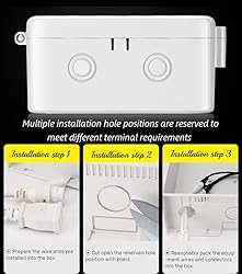 - Features: Name: monitoring adapter plate Color: White Material: ABS plastic Product specification: 140*130*65mm/5.5*5.12*2.56" Opening method: flip cover Scope: Indoor Note: The adapter plate does not include power supply and socket Specifications: Universal camera junction box mount is designed for the outdoor/indoor bullet IP /dome surveillance camera cables, easy to install. This sturdy junction box has drilled holes already to fit any size of your cameras. Save the worries of cracking the bracket by mistake. Solid screws are included. Enough space to store excess cables. You can mount it according to your needs. It is reusable even you switch to another type of camera. This provides a compact and neat solution for cable management during installation. Easy to operate and maintain, you can use this junction box as a mount extension to give the cameras a little extra space and get a better view under the eave. Package Contents: 2 * Camera Base Junction Outlet Box 2 * Screws Kit