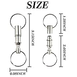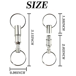 Package include: 11PCS quick release key chains. Color: silver. Material:made of ferroalloy, surface polished with silver nickel. Size: The length of the press head side is 2.05inch, the other side length is 1.38inch, total length is 3.15inch. The width of ring is 0.98inch, weight 14g. Classic shape, portable weight, and no added baggage to wear. You can organize all your keys, easily separate your daily keys from your work keys, and never lose or mix all your keys together. Keychains can be combined at will, can be easily combined and opened. Press the switch to separate the two sections quickly, and press the switch to combine the two sections quickly. Suitable for hanging small flashlights, speakers, telephone pickups, labels, pliers and other hand tools, practical gifts for family and friends.