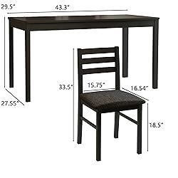 【Complete 5-Piece Dining Set】 - The dining set includes 1 spacious table (43.3''L×27.6''W×30''H) and 4 matching chairs, perfect for family meals or entertaining guests. 【Premium Solid Wood Construction】 -The dining table set crafted from 100% natural [oak/walnut/rubberwood] for superior durability and timeless elegance that lasts for years. 【Ergonomic Comfort Design】 - The table and 4 chairs set features padded seats with high-density foam and contoured backrests for all-day comfort during meals or work sessions. 【Easy Assembly & Maintenance】 - The dining set comes with all necessary tools and clear instructions for quick setup (under 30 minutes) plus an easy-to-clean, scratch-resistant surface. 【Worry-Free Purchase】 - Backed by our 90-day satisfaction guarantee and 1-year structural warranty for complete peace of mind.
