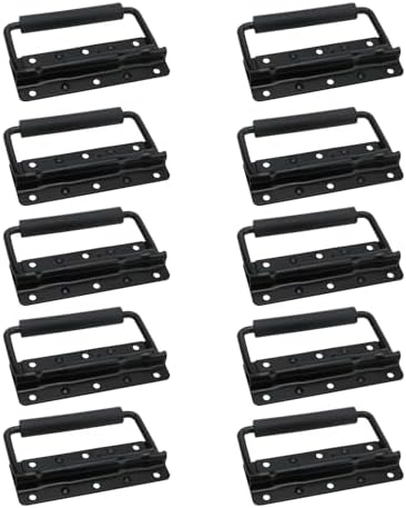 SOUJAP 10 Pack Black Spring Loaded Case Handle, 124 x 80mm Folding Pull Surface Mount Handle with Rubber Grip, Chest Handles for Flight Case, Cabinet