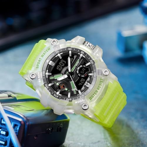 findtime Unique Watches for Men, Military Tactical Men's Wrist Watches Transparent Designer Digital Work Sport Cool Relojes para Hombres Waterproof Fluorescent Green