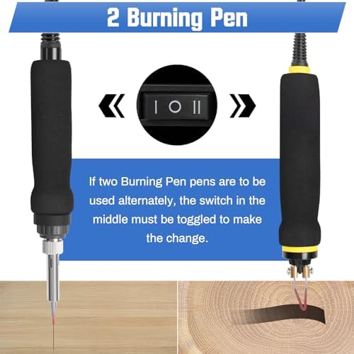 - 【Upgraded Pen Grips】The pyrography pen of the 2-in-1 pyrography burner is equipped with comfortable and soft handle, reducing pressure during the drawing process. The handle is made of heat-resistant material, ensuring a comfortable drawing experience during use..
