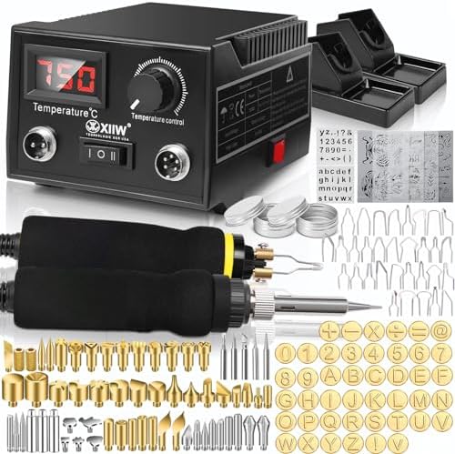 2 IN 1 Wood Burning Kit 100W with 2 Wood Burning Pens, 165 Pcs Pyrography Wood Burning Kit with 113 Solid Points and 33 Wire Nibs, Temperature Adjustment 300~750°C, Wood Burner for wood and leather