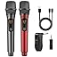 Aveek Wireless Microphone for Karaoke, 2.4GHz Rechargeable Karaoke Microphone(Work 10hs), for Speaker, Karaoke Machine,Church, Speech, Wedding, Party Singing, Grey&Red, 2 Packs