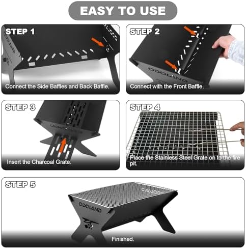 Odoland Camping Campfire Grill, Portable Folding Charcoal Grills, Backpacking BBQ Grill, Heavy Duty Firepit Grill with Carry Bag for Outdoor Cooking, Bonfire, Patio, Backyard