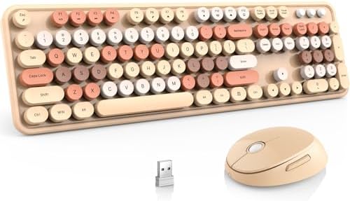 Wireless Keyboard and Mouse Combo, MOFII Full-Size Retro Round Keyboard and Mouse, 2.4 GHz Wireless, Plug and Play, 8 Multimedia & Shortcut Keysfor Mac, Windows, Laptop/Desktop/PC (Creamy)