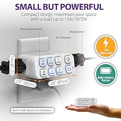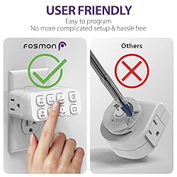 [CUSTOMIZABLE COUNTDOWN OUTLET TIMER] Fosmon's countdown timer gives you total control over when your lights or appliances turn on and off. By combining multiple time buttons, you have a total of 55 countdown durations available, ensuring it works for your needs. [EASY TO PROGRAM] Simply press the buttons of the power timer for the duration you want the device to be on. For example, press the 1-hour and 30-minute buttons to set a 1.5 hour countdown. The repeat button will run the same countdown daily. An on/off switch comes in handy when you want to turn your device on or off instantaneously. [MULTIPLE SAFETY FEATURES] The timed outlet plug is certified with ETL, ensuring it’s safe to use. The two grounded outlets are not only easy to access, but also protect you against electric shocks. The shell of the timer is fire-resistant with a V-0 rating. [WIDE USES] The auto shut off timer outlet plug supports 1/2 horsepower and is rated at 125V/15A 1875W for general use. It’s compatible with incandescent, CFL, and LED lights. The electric plug-in timer is ideal for seasonal lights, lamps, fans, chargers, coffee makers, and slow cookers, and is great to help deter break-ins as it automatically turns your lights on and off. [LIMITED LIFETIME WARRANTY] Join millions of satisfied customers with our limited lifetime warranty, backed by our experienced and dedicated US-based customer service.