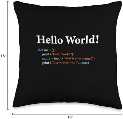 Web Developer Gifts Store Python Hello World Computer Programming Language Throw Pillow, 16x16, Multicolor
