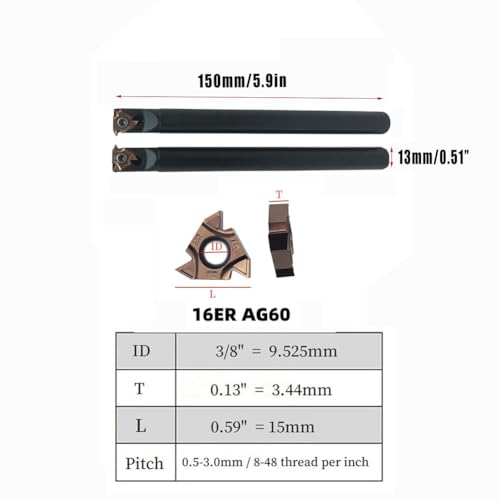 Lather Threading Tool Bit Set External Internal Threading Boring Bars Turning Tool Holders with 11IR AG60 16ER 16IR AG60 Carbide Threading Inserts (2pcs Boring Bars + 16ER IR AG60)