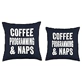 Programming Shirts & Coffee Lover Gift Store Coffee Programming and Naps Funny Code Debugger Programmer Throw Pillow, 16x16, Multicolor