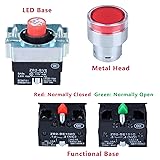 Product Name: LED Lighted Momentary Start Stop Push Button Switch; Ui: 660V; Ith: 10A; Contact Type: 1NO1NC; LED Color: Red+Green; LED voltage: 110VAC High Quality: Durable Metal Head; flame retardant shell material, longer service life Mounting Size: 22mm(7/8"); Operation Type: Momentary Wide Application: widely used in industrial equipment, CNC machine tools, instrumentation, marine equipment, company equipment, etc. Package Content: 1 * Red (1NO1NC) + 1 * Green (1NO1NC) Momentary Push Button Switch
