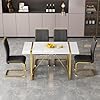 Ebullient White Dining Table Set for 4,Rectangular MDF Dining Table and Black Faux Leather Dining Chairs, 5 Piece Dining Table Set,Modern Dining Room Table Set with Metal Frame