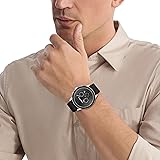 Timelessly defined with an architectural case profile, this multi-function watch has an elegant sunray dial with a geometric minute-track, date window and raised indices to compliment any look. Quality Materials: Multi-function, two tone stainless steel and black ionic plated case with a black leather strap. Quartz Multifunction: It’s a battery-powered watch that sends energy through a quartz crystal. It is typically built into three separate dials for the day of the week, date of the month and 24-hour time. Durable Mineral Crystal: Made from glass and protects watch from scratches. Caring for your timepiece: Your Calvin Klein watch has been developed with meticulous attention to quality, function and detail. A maintenance interval of 3 to 5 years is recommended, in addition to any required battery replacement. Never open the watch yourself.