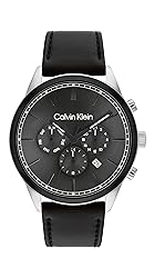 Calvin Klein Men's, CK Infinite Multi-Function Watch with Sunray Dial, Water Resistant, Black Leather Strap, (Model:25200379)