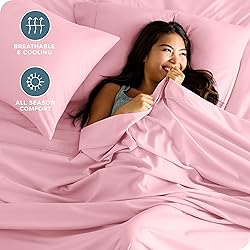 Bare Home Split Head Flex King Sheet Set - 1800 Ultra-Soft Microfiber Bed Sheets - Double Brushed - Deep Pockets - Easy Fit - 4 Piece Set - FlexTop King Bedding (Split Head Flex King, Light Pink)