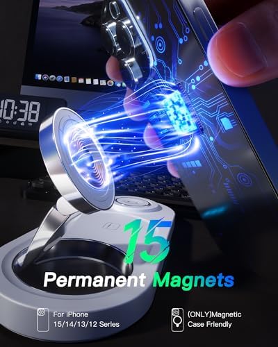 - More Than Fast: The ultimate Apple charging station is equipped with an 18W adapter and an exclusive magnetic fast charging for iPhone module that delivers up to 15W of power. With a significantly reduced recharge time, this mag-safe charger stand ensures you have more time to enjoy your Apple devices. Manufacturer's Note: the charging times will vary depending on the battery capacity of different models