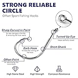 Unique Design --- Extremely sharp, offset Ponit, special barb hooks is designed to ensure that the point of catfish hooks rolls in the corner of the fish's mouth, made for less physical damage to the fish. Easy to remove. Great variety covers every size you should need Premium Quality --- Made of premium high carbon steel, our circle hooks saltwater with double strength and corrosion resistance will last a long time on sharpness and help you catch a lot of fish. Stunning circle hooks for catfish bring you a successful fishing day Good Craftsmanship --- The eye of circle fishing hooks is clearly precision bent into a perfectly closed round smooth circle, while the shaft gently curves into the correct bends and shapes to make hooking a fish an effortless task and the barb is masterfully designed Great Assortment --- 240pcs/box in total. 30pcs of each size #6, #4 & #2; 25pcs of each size #1 & 1/0; 20pcs of each size 2/0, 3/0, 4/0; 15pcs of each size 5/0, 6/0; 10pcs of each size 8/0. 11 different sizes circle fishing hooks are well assorted in a reusable ultra hard plastic box. Must Have for Fresh & Saltwater Fishing --- Our circle hooks assortment is perfect for inshore fishing hooks freshwater and fish hooks saltwater. 11 mixed sizes of saltwater hooks is suitable for bass, walleye, trout, salmon, sunfish, channel catfish, blue catfish, and flathead catfish