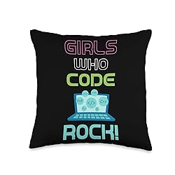 Programmer Girl Computer Debugging Coder Geek Girls Who Code Rock Programmer Computer Debugging Coder Throw Pillow, 16x16, Multicolor