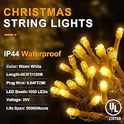 KNONEW 8 Lighting Modes Remote and UL Plug Christmas String Lights(500LEDs/1000LEDs)