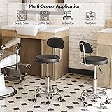 Suitable for Various Scenes: The height adjustable (18.1" - 24") feature of this drafting chairs enables it to serve multiple occasions. The simple and easy to operate handle helps you quickly adjust the seat height,Also can be used on carpets, they roll smoothly. Stable and Smooth Movement: The maximum load capacity of this bar chair is 220 lb. With 5 durable universal wheels at the bottom to ensure 360 degree rotation and excellent flexibility, this round rolling stool can easily promote your work efficiency.And great for small spaces. Perfect for Sedentary Crowds: The seat of this rolling stool is filled with high elastic sponge and covered with easy-to-clean PU, ideal for people who need to sit for a long time to work. The ergonomic back and footrest help relieve fatigue quickly Simple Appearance: The elegant style and classic black are well matched to make this drafting chair integrate with any decors. As the combination of practicality and aesthetics, this bar stool can please your eyes wherever it is placed Assembly, So Easy: This drafting swivel chair comes with a picture-style manual, labeled accessories and corresponding installation tools. You don't have to take too much effort to get this utility and beautiful bar chair