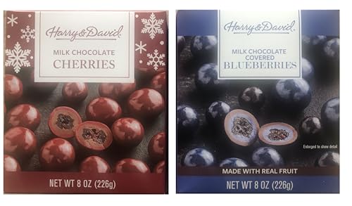 Bundle of 2 Boxes (8 oz each) of Harry & David Milk Chocolate Covered Blueberries and Cherries ~ 1 Box Each Flavor Make Great Gift Set