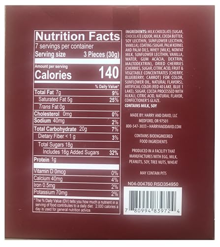 - FLAVORS: Milk Chocolate Covered Blueberries and Milk Chocolate Cherries
