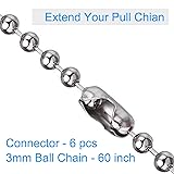♥ [304 Ball Chain] Our Stainless Steel extension chain is rustproof, durable & great pulling force(Max. force 30 lb). 🌳 [DIY Your Pull Chain] Comes with 6 connectors for extending your fan&light pull chains. 🌻 [Easy to Use] Bead diameter 3mm, conforms to most fan chains. Adjustable in length - simply cut between the balls for your desired length. ✔ [Other Application] This chain is also ideal for DIY crafts, like necklace, bracelet, pet tag ring, key ring and more. 🌺 [What You Get] 1pcs 60 inch / 1.5 meter metal chain, 6pcs chain connectors.