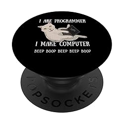 I are Programmer I make Computer Beep Boop funny for every developer, hacker, coder and programmer that do programming, coding, debugging table. If you study information technology or science. Funny I are Programmer Computer Science Cat Kitty Nerd is a perfect for everyone who loves coding and developing new computer langues. Perfect as a birthday or christmas for an engineer, programmer or someone who loves technology. Adhesive backing attaches the PopGrip to your case or device. Will not stick to silicone, leather, waterproof, or highly textured cases. Works best with smooth, hard, plastic cases. Not compatible with wireless charging Printed top is swappable with other compatible PopGrip models. Just press flat, turn 90 degrees until you hear a click and remove to swap.