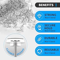 - Enhance your organization and creative projects with our Premium Clear Push Pins. This set of 150 push pins is designed for versatile use, allowing you to securely fasten paper, photos, and other materials to bulletin boards, corkboards, foam boards, or cardboard. This construction ensures that the pins remain reliable and functional even after repeated use. The pins are not only durable but also resistant to rust, providing a long-lasting solution for your home or office needs. For added convenience, each set of 100 push pins comes in an independent transparent plastic box. This packaging not only facilitates easy access but also helps in keeping your desk or drawer neat and organized.