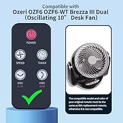 - RETROSUN New Replacement Remote Control Compatible with Ozeri OZF6 OZF6-WT Brezza III Dual Oscillating 10” Desk Fan.