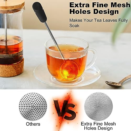 - Easy to Use: The tea infuser adopts a large capacity tea ball, which can accommodate filtering 3 teaspoons of tea. The tea filter has a 5.5 inch extended handle, suitable for tea cups and teapots. The tail end is equipped with a rotatable and sturdy knob, which can be easily twisted to place tea leaves.