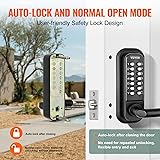Gen2 Mechanical Keyless Lock: This mechanical keyless entry door lock, with its full mechanical structure, makes it tough for thieves. There is no need for charging or batteries. Just enjoy easy installation and operation. The updated model makes changing the password a breeze, and the adjustable left and right handles provide greater flexibility. Universal for Multiple Doors: This embedded mechanical lock comes with multiple sets of screws and spindles of varying sizes: 2.1" / 55 mm, 2.4" / 63 mm, 2.7" / 71 mm, 3.1" / 79 mm, and is compatible with door thicknesses of 1.4"-2.5" / 35-65 mm. It is suitable for courtyards, outdoor gardens, garages, storerooms, iron or aluminum doors, fence doors, etc. It is easy to install and replace. Pay attention to drilling one more hole, and the front and rear panels should have through holes. Auto-lock & Normal Open Mode: For better home security, the lock automatically secures when the door closes. With the normal-open mode upgrade, it's a breeze for frequent entries, especially suitable for children or the elderly. When this function is activated, your password lock becomes a simple door handle. Premium Zinc Alloy: The zinc alloy construction and corrosion-resistant electroplated coating make this mechanical door lock resistant to water and rust. It ensures security under various weather conditions, whether it's a freezing winter, a scorching summer, or a rainy day, extending the lifespan of your lock. User-Friendly Lock Replacement: The lock handles can be adjusted to be used on either side, making it flexible for use. The 2.3" / 60 mm or 2.7"/ 70mm latch bolt features a push-pull structure, allowing for direct replacement. With a large padding plate of 6.2 x 2.5 inches / 160 x 65 mm, you won't have to make a big hole for the security lock, keeping your door looking nice and tidy.