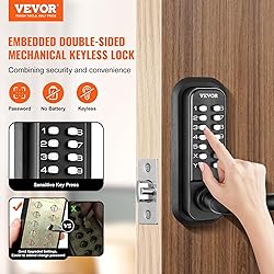 VEVOR Mechanical Keyless Entry Door Lock, 14 Digit Keypad, Double-Sided Embedded Outdoor Gate Door Locks Set with Keypad and Handle, Water-Proof Zinc Alloy, Easy to Install, for Garden, Yard, Garage