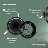 PRECISE MEASUREMENTS: Inner diameter: ø3.9" Inch. Outer valve cover diameter: ø5.91" Inch. Mount collar length: 2.32" Inch. Total height of the diffuser is 3.15" inches. Universal diffusers serve a dual purpose by efficiently distributing conditioned air from the HVAC system to maintain consistent temperature control and air circulation while also effectively removing stale or polluted air depending on the specific air flow settings of the ventilation system they are integrated with. A rotating diffuser valve gives you the ability to precisely control the airflow to create a comfortable environment. Suitable for installation on ceilings or walls in any position. Before installation, ensure that you clean your duct using a damp cloth to remove any debris and dust. Insert the flange into the duct and secure it with sealants, screws or clamp if necessary. Diffuser cover plate can be removed after installation for convenient cleaning access. Manufactured from sturdy and durable ABS plastic in a black finish, this universal air diffuser is a versatile choice, well-suited for an array of settings and applications, including residential, commercial, healthcare facilities, educational institutions, hospitality, and recreational facilities.