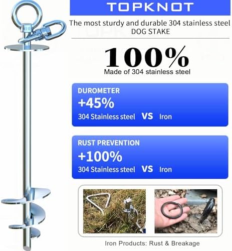 - 30FT DOG TIE OUT CABLE:we upgraded the tension on the 30 ft cable,Upgrade the easily broken iron clips to stainless steel material clips for up to 150 LBS of XL dogs and tests on a stable ground,stainless steel material clips Double crimp for stronger ends, Upgrade ordinary carabiners to screw locks,Manual screw door reduces the possibility of pets escaping.TOPKNOT Ensure a long-lasting and reliable outdoor experience for your pet-Try it out!