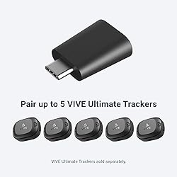 Wirelessly connect your standalone or PC VR headset with VIVE Ultimate Tracker for an elite positional tracking experience.¹ Using a proprietary low-latency 2.4 GHz connection, VIVE Wireless Dongle can pair a compatible device with up to 5 VIVE Ultimate Trackers for full-body tracking and object tracking.² Plugs into your VIVE standalone VR headset or PC via USB Type-C.³ Compatible with: VIVE Focus Vision, VIVE Focus 3, VIVE XR Elite, and third-party SteamVR-supported headsets.³ Not compatible with SteamVR Base Station accessories such as VIVE Tracker 3.0. In-box items: VIVE Wireless Dongle Cable clip Extension cable Extension cradle