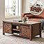 - Elevate your Living Room: This farmhouse coffee table with storage bundles functionality and farm aesthetics into one. Features classic barn door and unique farmhouse wood grain finish, adding a touch of rustic charm and cozy natural vibes to your space. The corner metal trim adds more exquisite. Not only keeps the living room neat and tidy but complements the surrounding furniture and decor, feels inviting and welcoming, gathers the family around, and enjoy the warmth and intimate ambiance