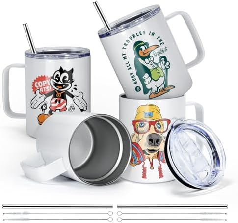 - 【Product Include:】4 * 12 oz Sublimation handle stainless steel mugs, 4* BPA-free PP material Push-Slide lid, 4 * Stainless steel straw & brush