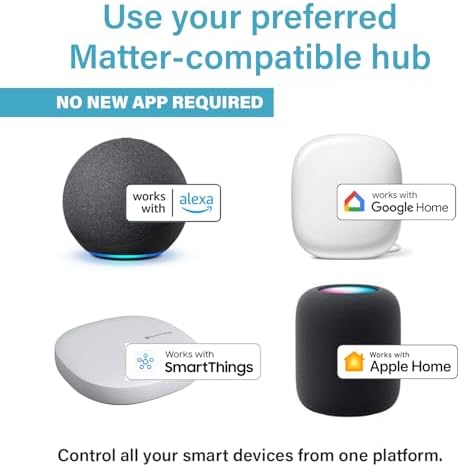 - Matter Hub Required. A Matter-compatible hub is required for successful setup. Most leading smart home hubs and assistants are compatible out-of-the-box with Matter – Apple HomeKit, Google Home, Amazon Alexa, and Samsung SmartThings. Refer to smart home details with manufacturer