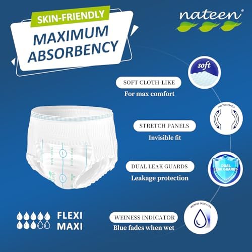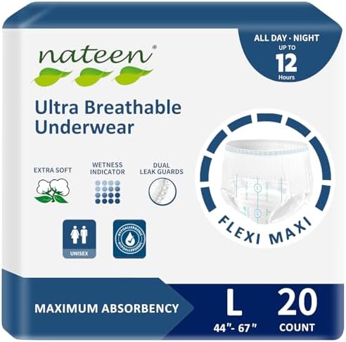 Nateen Flex Maxi Adult Incontinence Underwear for Women and Men, Maximun Absorbency Nighttime Pull Ups, Soft and Breathable Comfort Adult Diapers (Large, 20 Count)