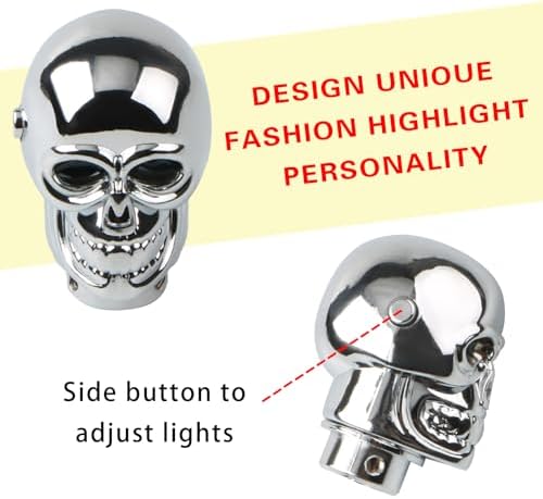 Slykew 1 PC Car Shift Knob, Aluminum Alloy Gear Stick, Shift Head with Led Light, Gear Knob Replacement, Automotive Part, Skull Decoration, Universal for Most Cars, Trucks, SUVs (Red)