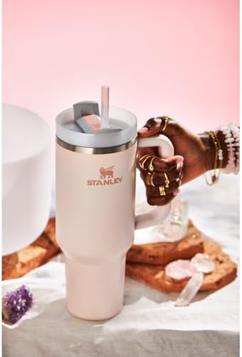Stanley Quencher H2.0 Vaso con Asa y Pajita 40 oz | Tapa Flowstate de 3 Posiciones | Compatible con Soporte de Vaso para Viajes | Vaso Aislado en Acero Inoxidable | Libre de BPA | Rosa Cuarzo 2.0